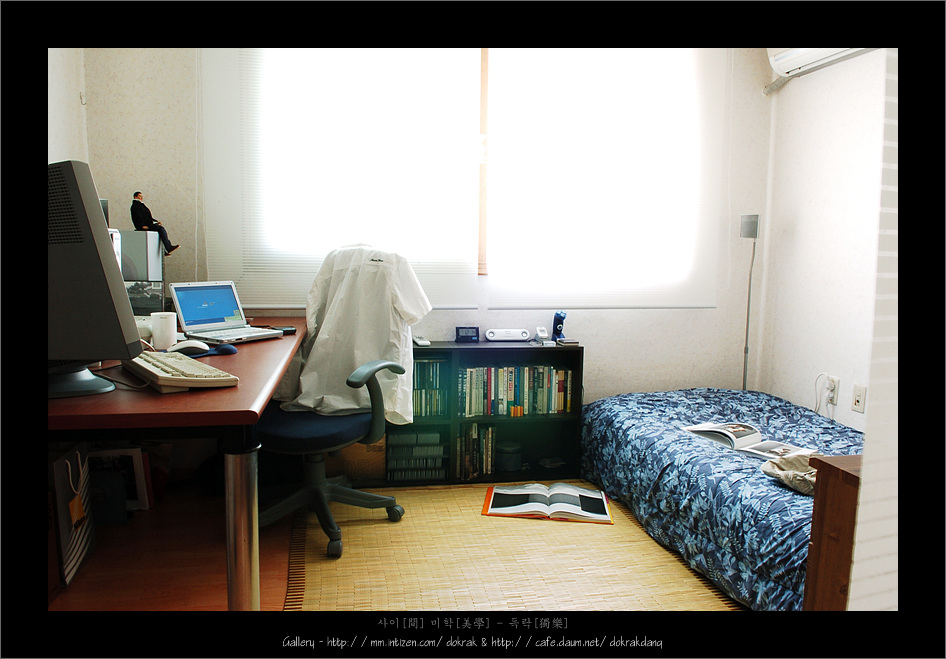 기지게를 한번 시원하게 켜고 나서 이부자리를 대충 펴 놓고... 바닥에 떨어져 있는 책과 기타 등등들을 침대 위로 던져 놓고 책상에 앉아 PC를 켠다...